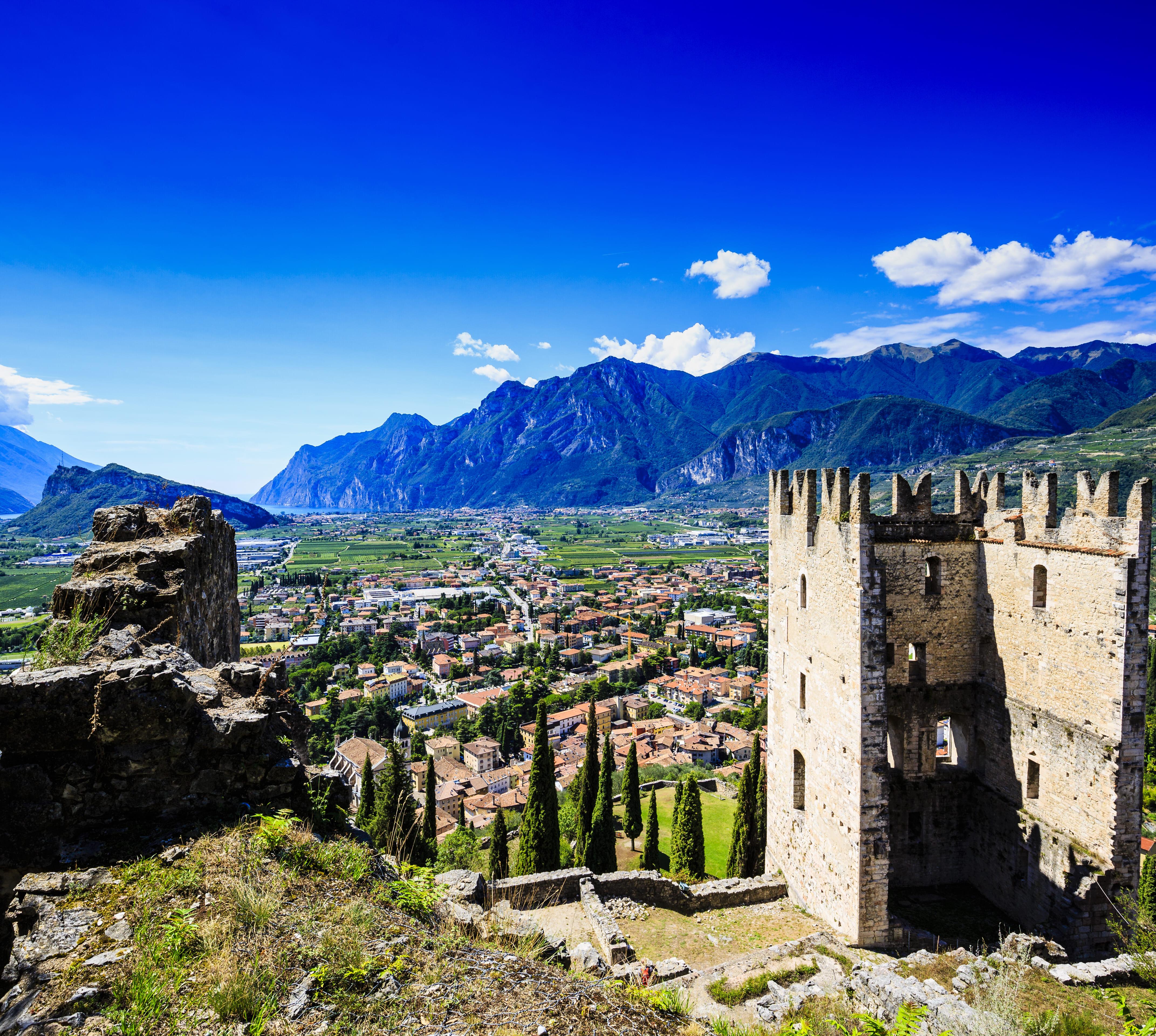 In Arco lohnt sich ein Spaziergang zum Castello di Arco hinauf, denn von hier hat man den besten Überblick. Die Burg thront weithin sichtbar über dem Ort. 1495 malte sie Albrecht Dürer bei seiner Italienreise, als Postkarte bekommt man diese Ansicht in fast jedem Laden des Orts.
