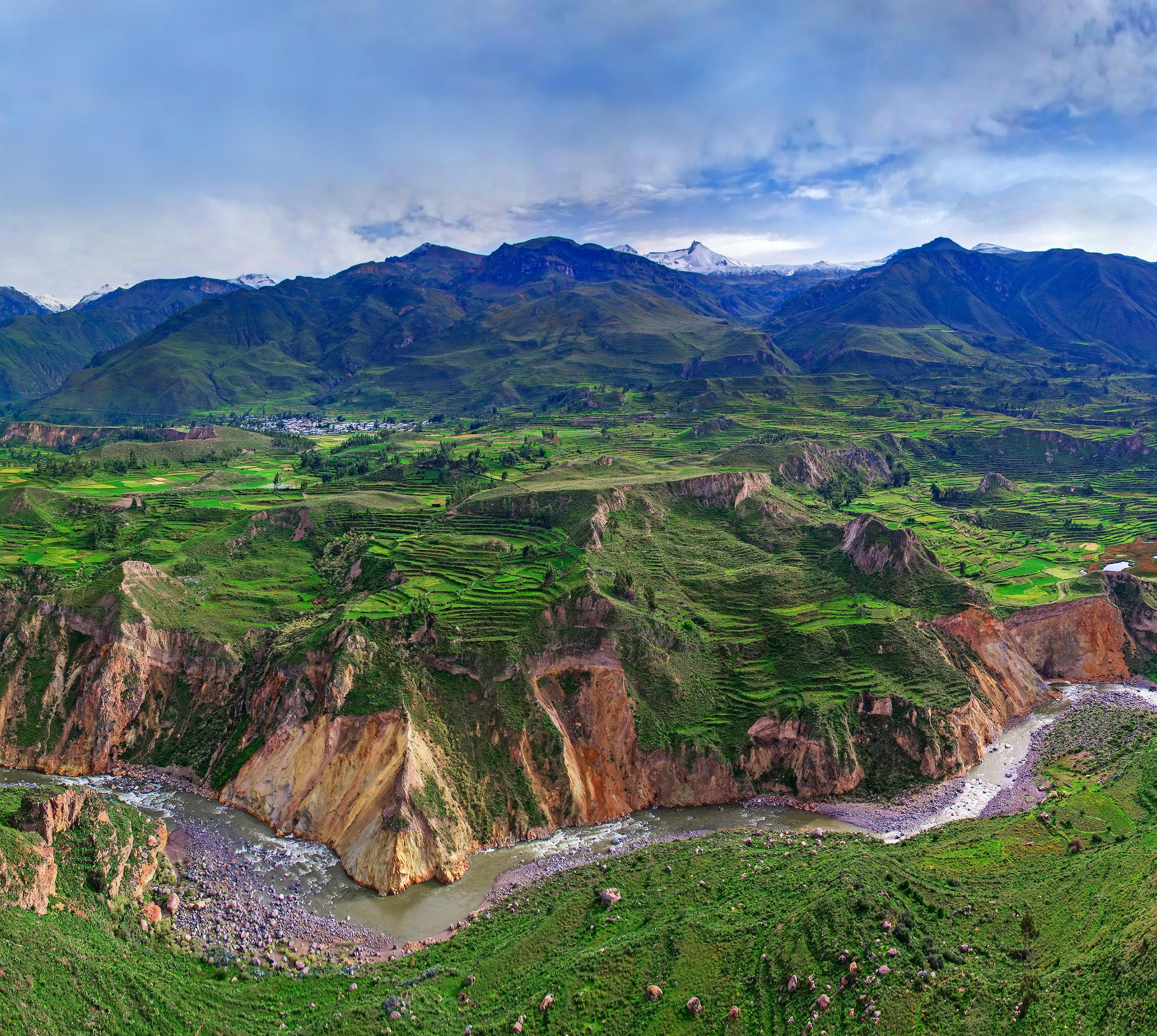 Die gewaltige Schlucht des Río Colca (ca. 150 km nordwestlich von Arequipa) gehört zu den großen landschaftlichen Erlebnissen in Peru. Malerisch eingerahmt ist der Canyon von 6000 m hohen Vulkanen. Die Ausflüge führen über den 4900 m hohen Pass bei Patapampa zum Aussichtspunkt Mirador de los Volcanes. Von hier bietet sich ein fantastischer Blick auf die umliegenden Vulkane, daher auch sein Name. Beeindruckend ist vor allem der Sabancaya (5976 m), der ab und an mit einer Rauchfahne aufwartet. Nur wenige Minuten nach Verlassen des Miradors eröffnet sich nach einer der zahlreichen Kurven ein Panoramablick auf das ca. 1000 m tiefer gelegene Colcatal. Es dauert nun noch einmal etwa 45 Minuten bis zum Eingang von Chivay, dem Hauptort des Tals. Höhepunkt der Tour ist die Fahrt zum Cruz del Condor und dem Mirador de Tapay, wo du weit über die rund 100 km lange Schlucht blicken und nicht selten auch Kondore im Gleitflug beobachten kannst. Wer länger bleiben will, kann sich im Tal in der traumhaften Colca- Lodge einmieten. Weiter westlich liegt der Ort Cabanaconde. Hier beginnen mehrtägige Wanderungen in den Canyon, die man vor Ort oder in Arequipa buchen kann.