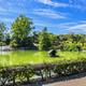 Der Park mit Spazierwegen und Teichlandschaft liegt ein Stück ins Inland versetzt.