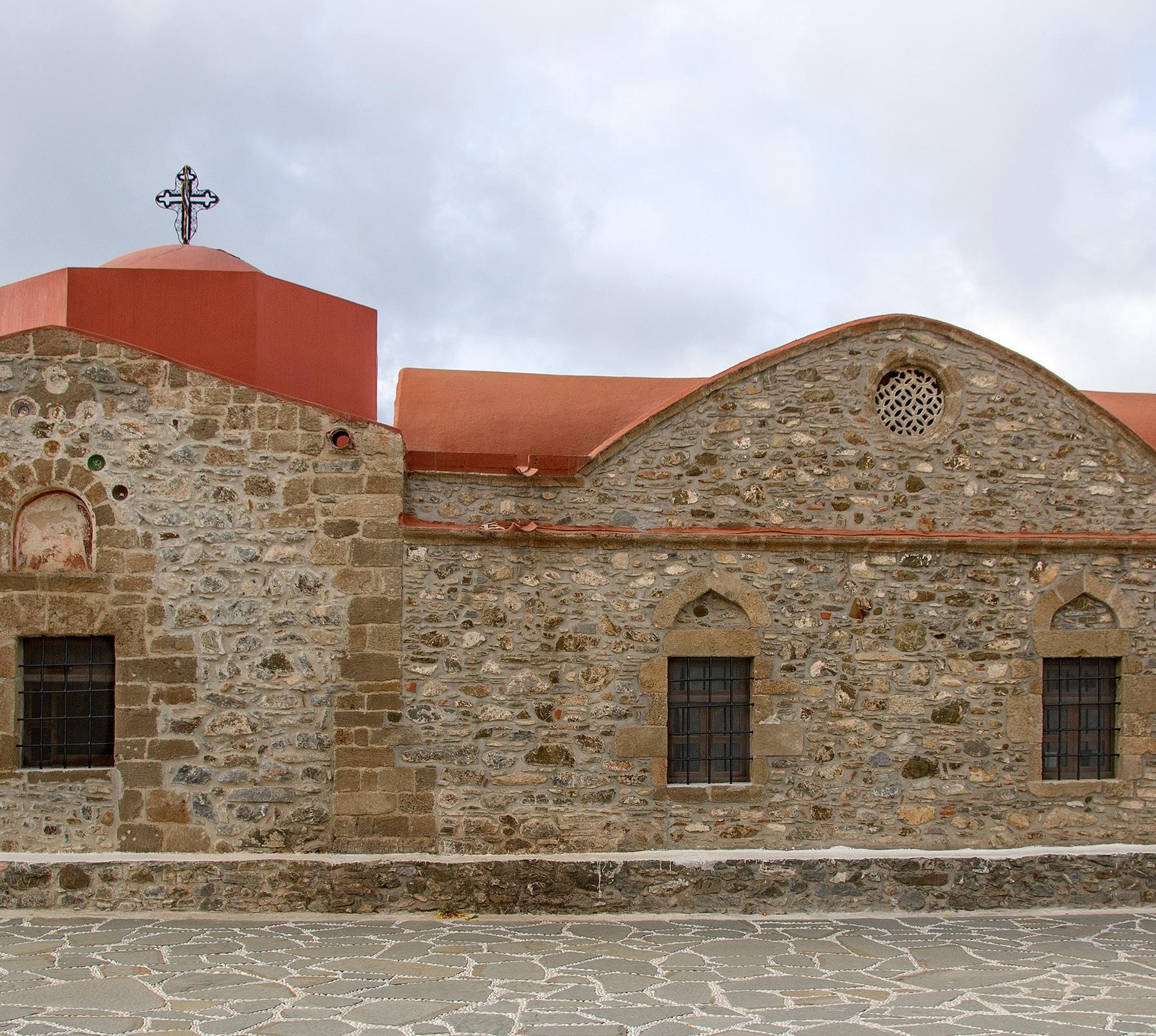 Die byzantinische Kirche der Entschlafung Mariä entstand im 13.oder 14.Jh., später kamen Anbauten hinzu. Im 17.Jh. ist die ganze Kirche mit Fresken versehen worden, die z.T. Anfang des 20.Jhs. restauriert wurden. Neben Darstellungen aus dem Leben Jesu Christi und der Muttergottes sieht man Szenen aus der Offenbarung des Johannes (Apokalypse), die sonst nur selten zu finden sind. Abgebildet sind hier z.B. die apokalyptischen Reiter und der aus der Tiefe der Erde aufsteigende Antichrist. Besonders prächtig ist die Ikonostase.