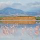 Zwischen November und April kann man mit Ferngläsern die Flamingos im Salzsee von Akrotíri beobachten.