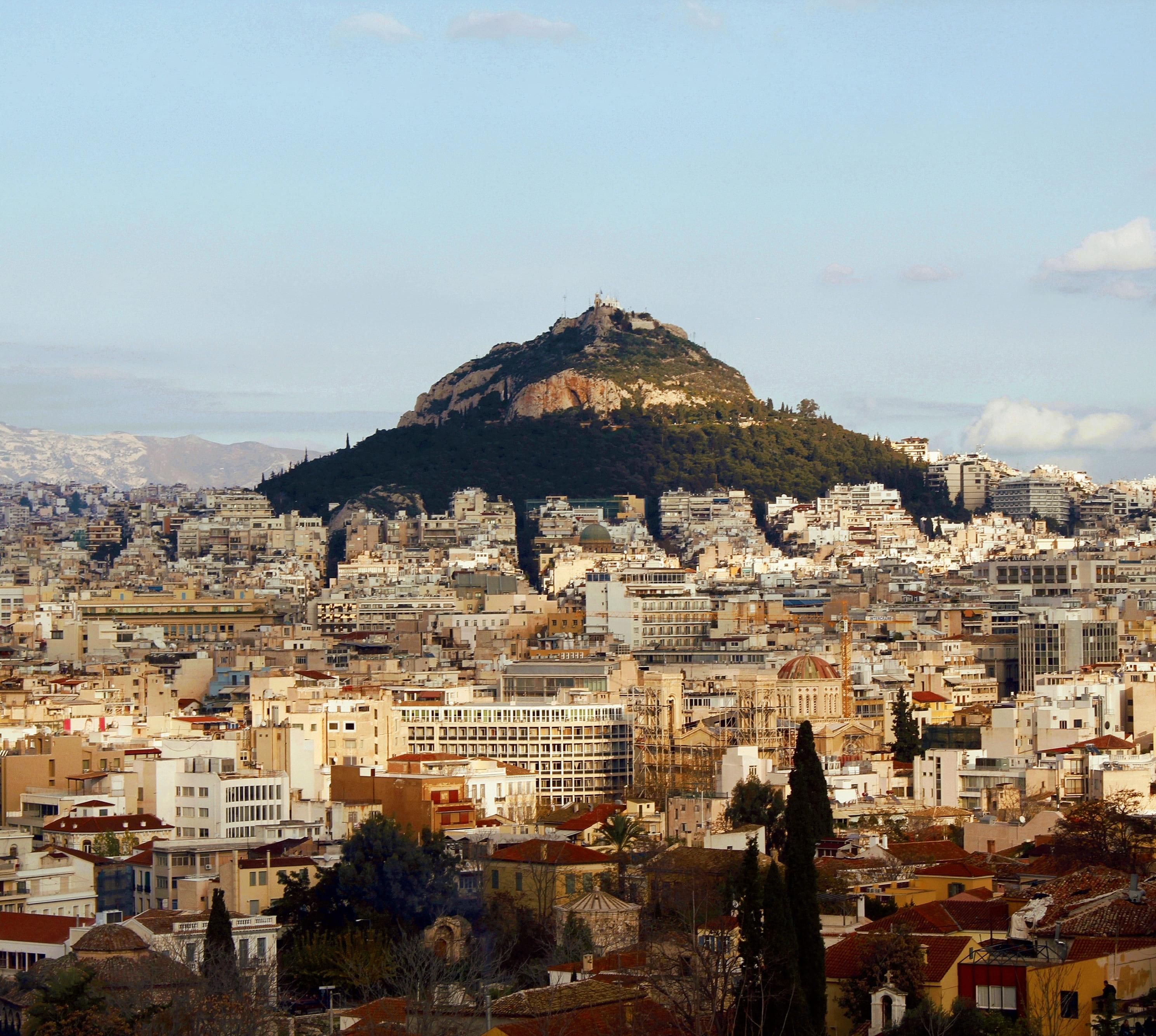 Der 277 m hohe Kalksteinfelsen beherrscht mehr noch als der Akrópolishügel das Bild Athens. Er erhebt sich über das Häusermeer mit einem grünen Gartenkragen, aus dem ein kahler Felskopf herausragt. Angenehme Spazierwege und eine Standseilbahn im Innern des Berges führen zum Gipfel, auf dem eine kleine, um 1990 neu im traditionellen byzantinischen Stil ausgemalte Kapelle dem heiligen Georg geweiht ist. An den seltenen klaren Tagen kann man von hier aus nicht nur die Athen umgebenden Berge, sondern auch die Insel Ägina und die Gipfel des Peloponnes erkennen. Auch der Sonnenuntergang ist von hier aus ein Erlebnis. Ganz Athen - einschließlich der Akrópolis - liegt hier zu Ihren Füßen.