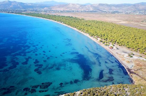 Gegenüber der Insel Euböa und ca. eine Stunde vom Athener Zentrum entfernt liegt der weitläufige Sandstrand von Schinias. In der Nähe ist auch ein Naturpark sowie die Stadt Marathon, von wo aus jährlich der Athener Marathon startet. Es gibt zahlreiche Bäume am Strand, sodass man nur bei viel Betrieb einen Sonnenschirm mieten muss. Surfer mögen den Strand übrigens, da es ganz schön windig werden kann.