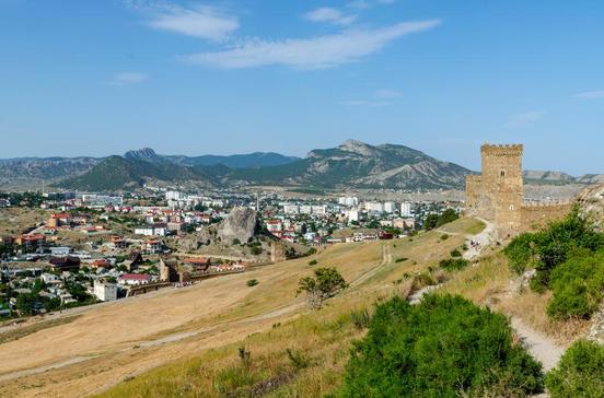 In dem Badeort im Osten (36 000 Ew., 77 km von Jalta) der Krim wachsen Wehrtürme in den Himmel: Genues Händler erbauten im 14.Jh. die Festung mit 14 wuchtigen Türmen und schier endlosen Mauerringen, um das Ende der Seidenstraße zu schützen. Die Anlage liegt unbezwingbar über dem Meer. Auf dem Friedhof gegenüber dem Parkplatz finden sich Gräber deutscher Kolonisten aus dem 19.Jh. Falls Sie nicht an die Südküste nach Jalta zurückkehren: Übernachten können Sie im Hotel Forum. Die 52 Zimmer bieten ansprechenden Komfort. Der Service ist noch etwas sowjetisch. Restaurant, Internetplätze und Fitnessraum, 15 Min. bis zum Strand. Das elegante Alije Parusa mit 53 komfortablen Zimmern lohnt die einstündige Weiterreise nach Feodossia.