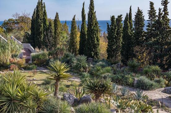 In dem prachtvollen alten Park von 1812 (6 km von Jalta) durchwandern Sie die Klimazonen von den Hängen des Krimgebirges bis ans Meer. Rosen, Oliven, Zypressen oder Mammutbäume – im subtropischen Klima gedeiht alles prächtig. Probieren Sie im Museumscafé exotische Früchte und Nüsse.