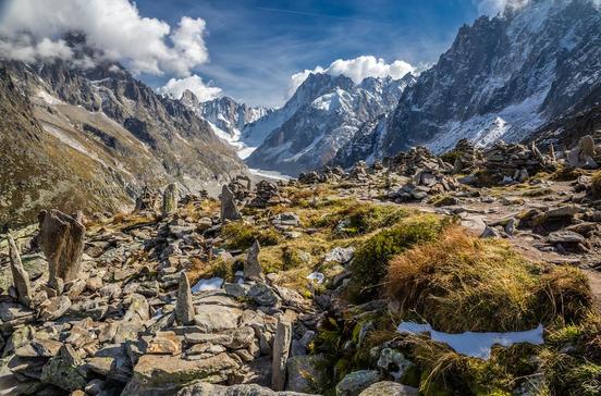 Wanderer können sich auch im Sommer an Mer de Glace, einem 7 km langen Eisstrom, erfreuen. Von dessen Spitze auf 3842 m Höhe reicht das Panorama bis zum Matterhorn.