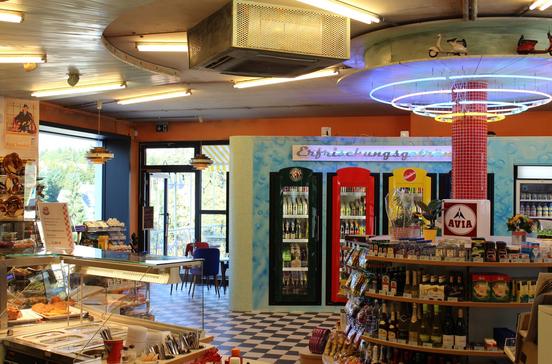 Essen & TrinkenRetro-Tankstelle im Stil der 60er Jahre mit Shop, Showroom für Veranstaltungen und Ausstellungen und Bistro mit leckeren regionalen Speisen.