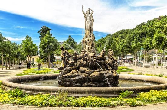 Üppig blühen die Blumen in akkurat angelegten Beeten. Vom ehemaligen Kurhaus (heute Casino) aus laden Serpentinenwege mit schön inszenierten Sichtachsen zum gemütlichen Flanieren.