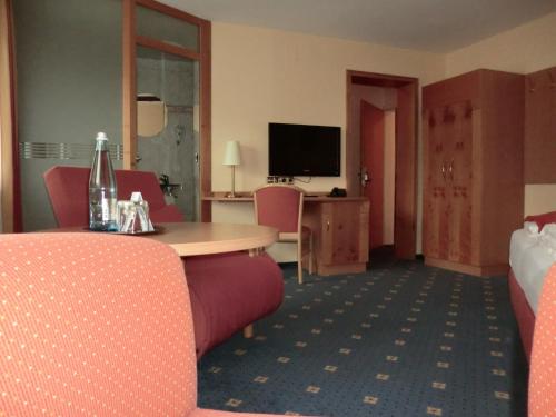 Jedes Zimmer ist mit einem TV ausgestattet. In einigen Zimmern lädt ein Sitzbereich zum Entspannen ein.