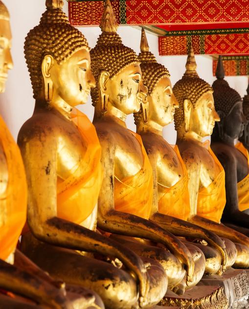 Bangkok ist auch das unbestrittene kulturelle und religiöse Zentrum Thailands. Rund 95 Prozent der Thais bekennen sich zum Buddhismus, der Lehre des Siddhartha Gautama, genannt Buddha. Vom älteren Geisterglauben haben sie deswegen aber nicht abgelassen. Damit die Geister nicht heimatlos umherschwirren, muss ihnen ein Haus gebaut werden. Meist ist es kaum größer als ein Vogelhäuschen und steht auf einem Pfosten im Garten, in der Hofeinfahrt oder auf dem Parkplatz. An keinem Morgen wird versäumt, den unsichtbaren Nachbarn Opfergaben darzubringen: Blumen, Reis, ein Glas Wasser, Räucherstäbchen. Diese Spiritualität bestimmt das alltägliche Leben in Bangkok ebenso wie die Rushhour auf der Sukhumvit Road, einer der größten Verkehrsadern der Stadt.