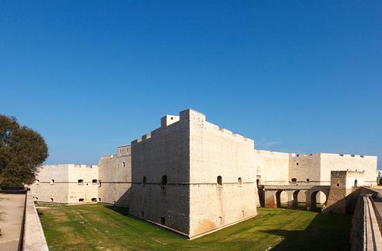 Eine der eindrucksvollsten Festungsanlagen Apuliens von Friedrich II., im Westen der Altstadt gegenüber dem Hafenbecken gelegen, bildet heute die Kulisse für anspruchsvolle Ausstellungen. Quadratische Geometrie bestimmt das Innere. Der äußere Gürtel der Festung kam erst in der Renaissance unter den Aragonesern hinzu.