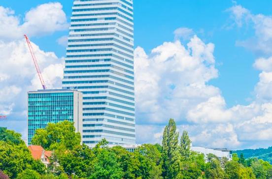 Das auffälligste Bürohaus der Stadt ist 178 m hoch – und immer wieder samstags darf eine kleine Gruppe dem schön schiefen Haus (offizieller Name: Bürohochhaus Bau 1) aufs Dach steigen und von oben auf Basel und das ganze Dreiländereck schauen. Wow! Unbedingt frühzeitig anmelden.