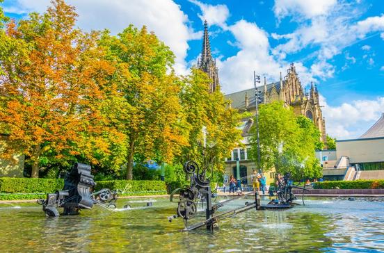 Der Platz ist eine großartige Anlage aus dem 18.Jh., die vom Münster beherrscht wird, das mit seinem roten Vogesensandstein und buntem Dach das Stadtbild prägt. Die 1090 geweihte Bischofskirche wurde 1356 von Johannes Parler erneuert. Bedeutend ist die romanische Galluspforte am Nordportal.