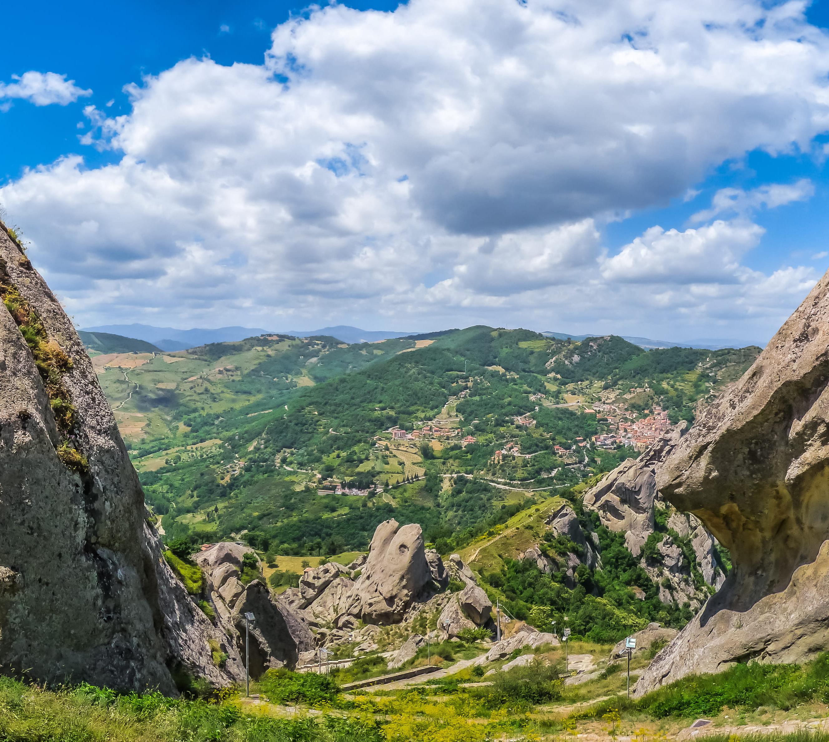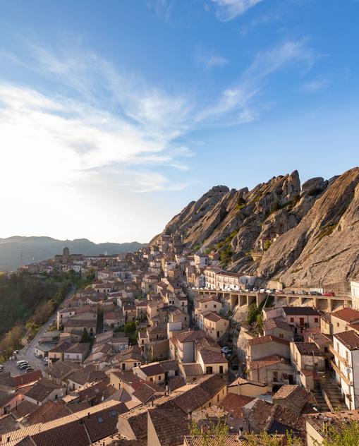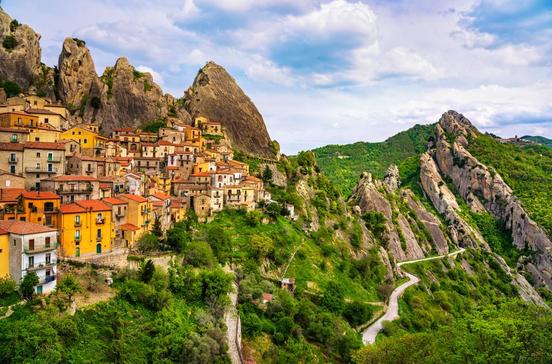 Von der Küste Metapontos führen ausgewaschene weite Flusstäler in die Bergwelt der Basilikata hinauf, so durch das Basentotal heran an die lukanischen Dolomiten. Sie werden wegen ihrer bizarren Felsformationen so genannt. Hinzu kommen schöne Wälder und zwei besonders malerische Bergstädtchen, Pietrapertosa und Castelmezzano.