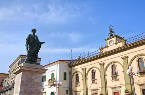 20 km östlich von Melfi liegt die 12 000-Seelen-Gemeinde, berühmt als Geburtsort des römischen Dichters Horaz (65 v.Chr., Reste des angeblichen Geburtshauses sind zu besichtigen). Im 1.Jh.v.Chr. avancierte Venusia zu einer der führenden römischen Städte. Ein Amphitheater, ein Frigidarium und mehrere Tempel zeugen davon. Der Ort ist auch berühmt für seinen Wein: In Venosa und Umgebung gedeiht der Aglianico del Vulture, der Vorzeige-DOC-Wein der Basilikata, der aufgrund seiner Qualität und Ähnlichkeit mit dem großen piemontesischen Bruder auch als Barolo des Südens bezeichnet wird. Im Grottenkeller des Restaurants Al Baliaggio lagert er in verschiedenen Qualitätsstufen; serviert wird er z.B. mit herzhaftem Pecorino oder mit gegrilltem Lammfleisch. Vielleicht hast du ja noch Platz im Kofferraum? 1 km vor Venosa in der Cantina Terre degli Svevi findest du den besten Aglianico del Vulture zu richtig vorteilhaften Preisen.