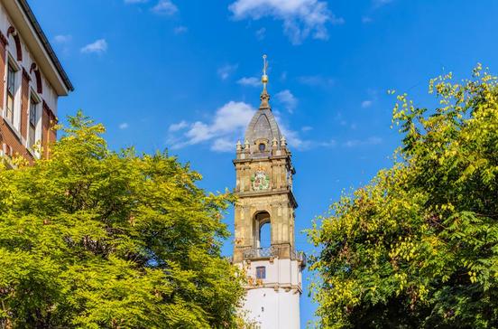 Das 56 m hohe Bauwerk aus dem 15.Jh. zeigt dem Betrachter seine Zuneigung und erinnert damit sehr an den Schiefen Turm von Pisa. Angst vor dem Besteigen braucht niemand zu haben, durch Untergrundarbeiten konnte die Neigung bei 144 cm Abweichung gestoppt werden.