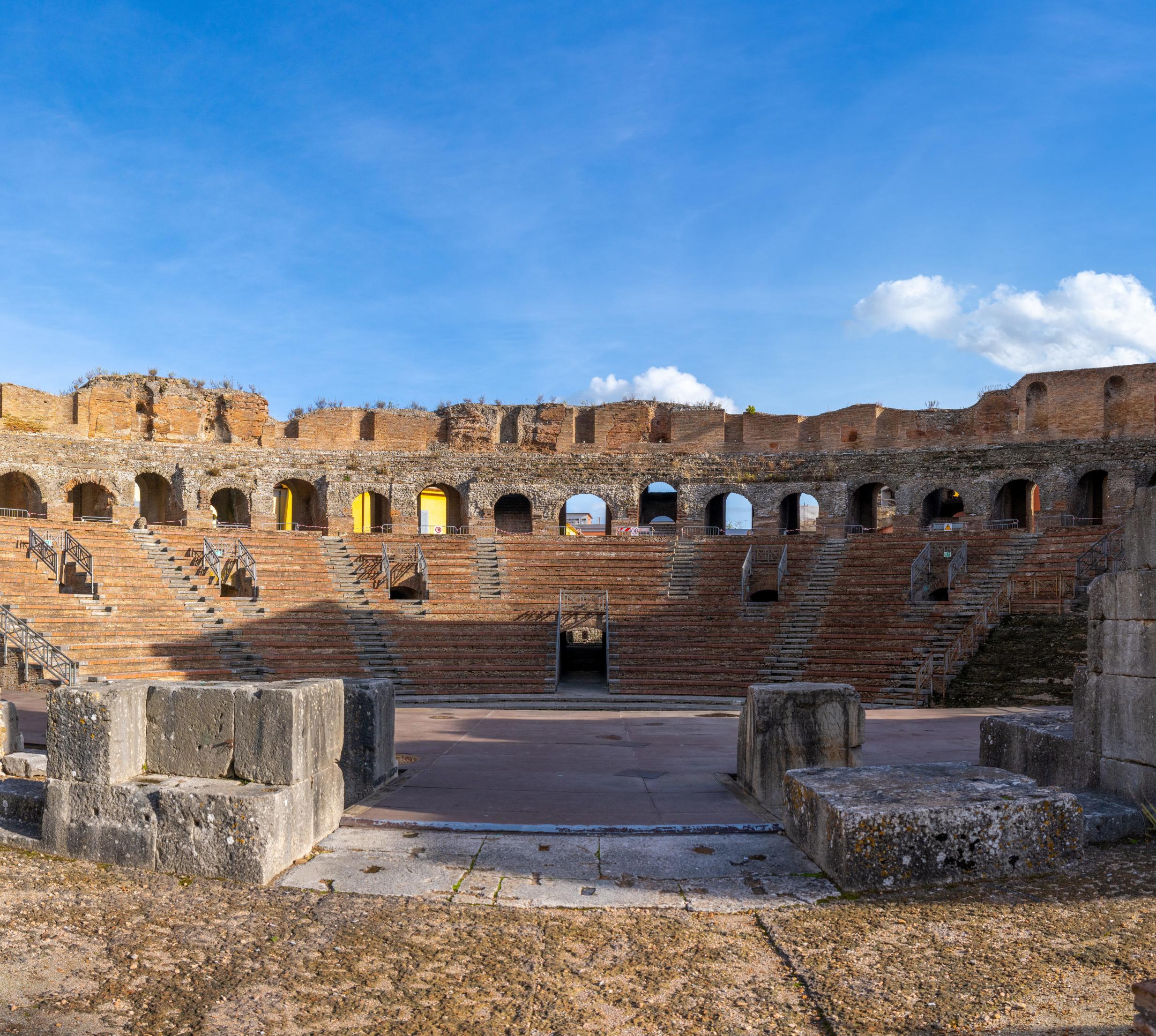 Rund 70 km nordöstlich liegt auf einer Anhöhe Benevento (60 000 Ew.). Im Zweiten Weltkrieg stark beschädigt, hat es aber aus seiner antiken Blütezeit einen wunderbar erhaltenen Triumphbogen zu Ehren des römischen Kaisers Trajan (2.Jh.) zu bieten, ein römisches Amphitheater, die Kirche Santa Sofia aus seiner Zeit als Langobardenherzogtum (7.–11.Jh.), den wieder aufgebauten Dom sowie das Museo del Sannio im Benediktinerkloster mit Schätzen aus der Frühzeit der Samniter, der Römer und der Griechen.
