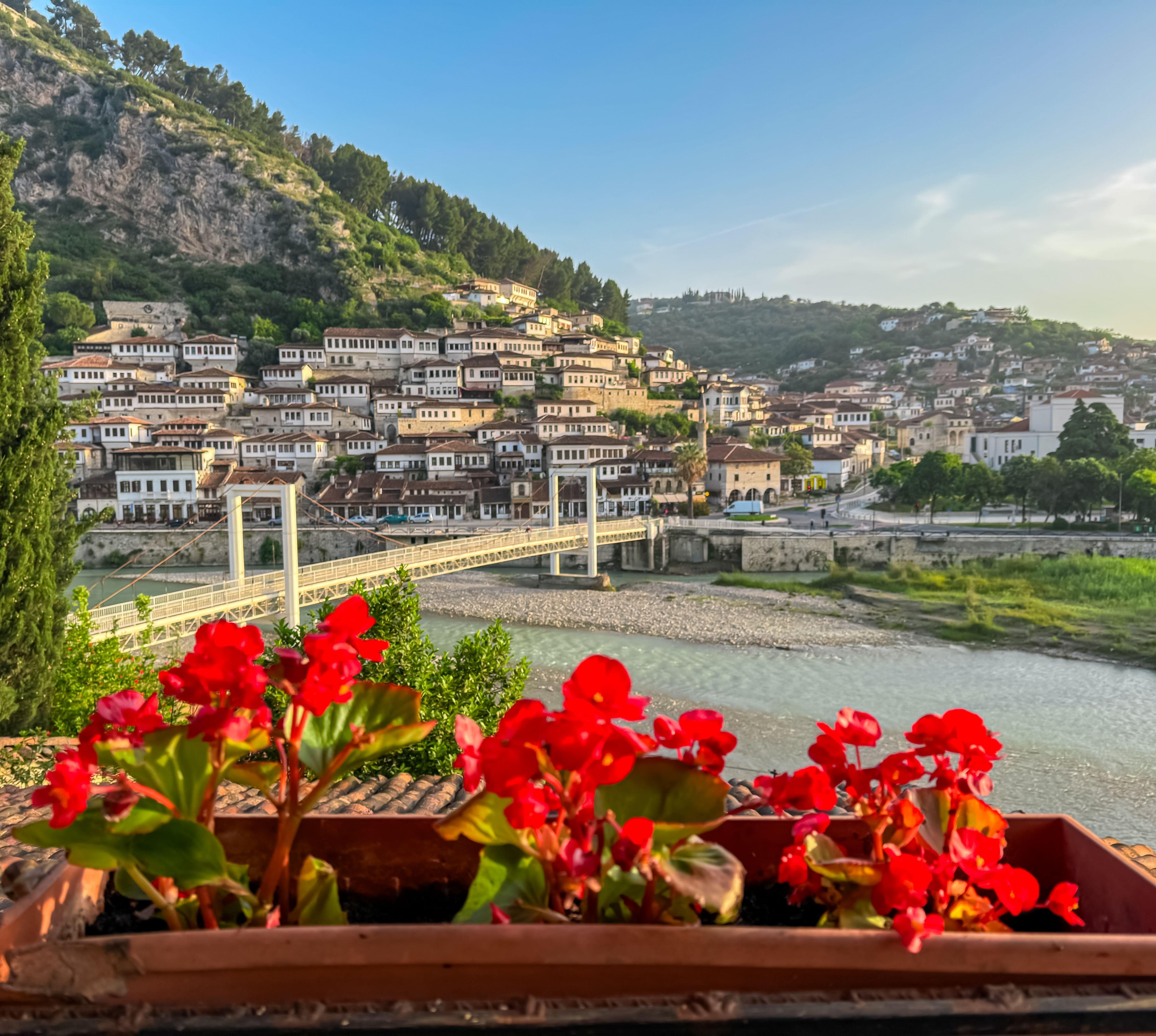 Die alte osmanische Stadt ist samt ihrer weitläufigen Festungsanlage seit 2008 Unesco-Weltkulturerbe. Zusammen mit Gjirokastër wurde Berat schon 1961 zur „Museumsstadt“ erklärt, weshalb die historische Substanz so gut erhalten werden konnte. Berat erstreckt sich an den Ausläufern des Tomorr-Massivs entlang des Osum-Flusses. Seine berühmten weißen Häuser mit den vielen Fenstern steigen terrassenförmig den Hang hinauf, ihnen ist der Beiname „Stadt der tausend Fenster“ geschuldet: In der Tat scheinen diese auf all jene Besucher zu starren, die an der Promenade und entlang des Flusses promenieren.