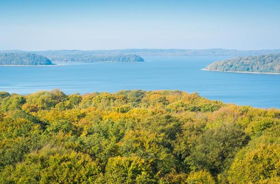 Die 99 Stufen nach oben zu steigen lohnt sich allemal: Der Blick vom 27 m hohen Turm auf dem Berg Rugard ist fantastisch, er reicht bis zu den Kirchtürmen von Stralsund.