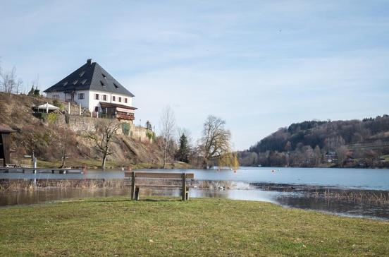 Das zu einem Biohotel gehörende Restaurant liegt über dem See und verwöhnt mit herrlicher Bioküche.