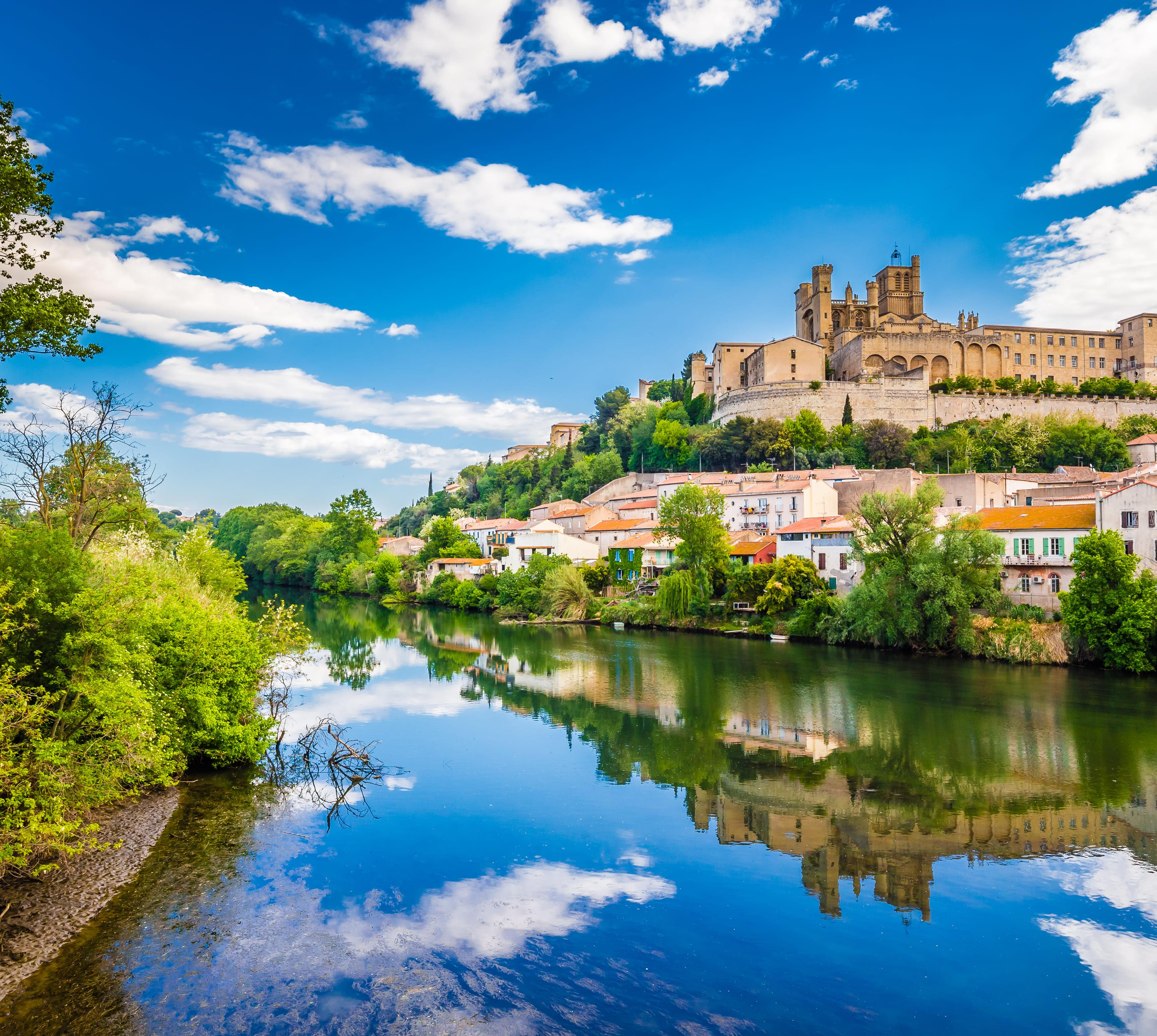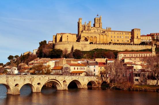 Die alte Steinbrücke über den Orb und die wuchtige Kathedrale auf einem Felsvorsprung über dem Fluss stehen für die Vergangenheit. Aber die Hauptstadt des Languedoc-Weins und Station am Canal du Midi öffnet sich mit dem Quartier Latin rund um die moderne Mediathek an der Place du 14 Juillet für die Zukunft. Das Zentrum der Stadt bilden die allées Paul-Riquet mit ihren Cafés und Restaurants. Dieser schönste Platanenkorso der Region verliert nur in den Zeiten der Stierkampf- Feria seine beschauliche Ruhe.