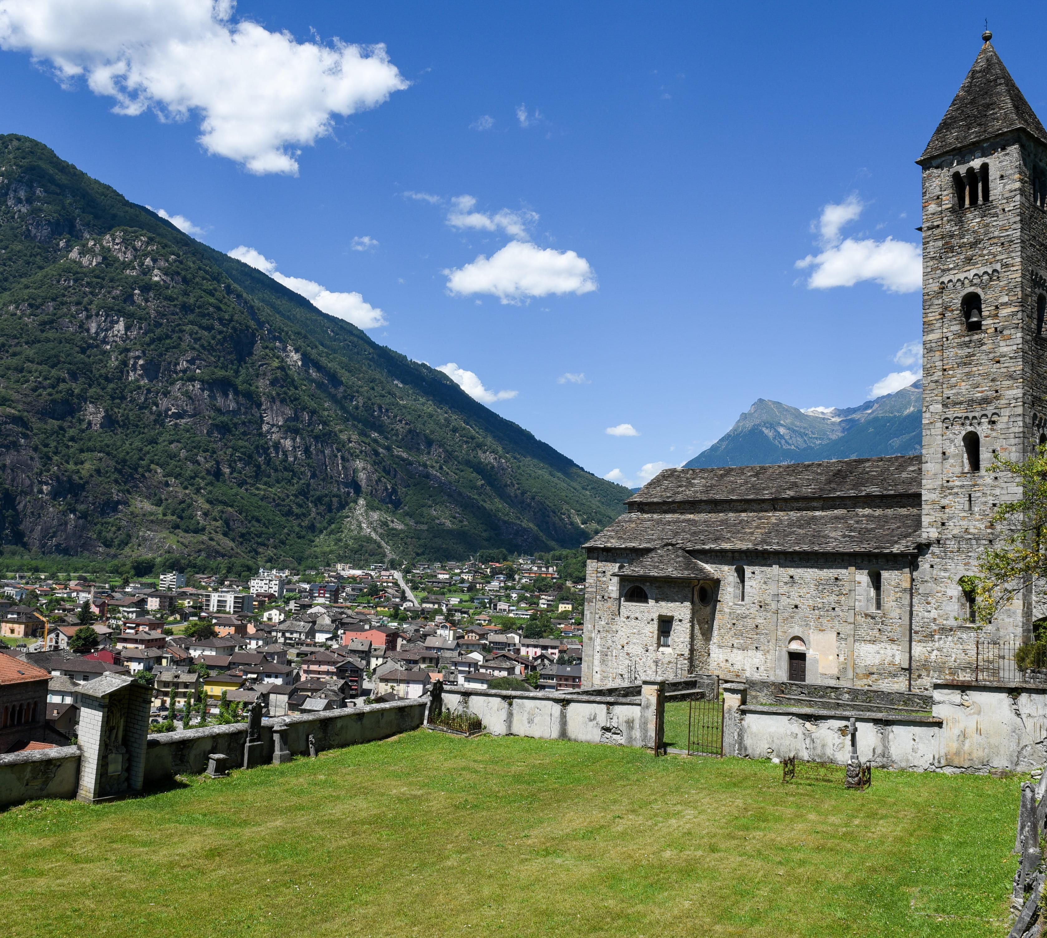 Die meisten Reisenden lassen Biasca auf der Fahrt Richtung Süden links liegen. Doch ein Zwischenhalt in dem Ort, wo sich Lukmanier- und Gotthardroute vereinigen, ist durchaus empfehlenswert: Wirf einen Blick in die romanische Kirche Santi Pietro e Paolo mit ihren wunderbaren Fresken aus dem 13.Jh., einer mittelalterlichen Version von Youtube! Folg dann dem Kreuzweg durch den Kastanienhain, werde 20 Minuten später mit dem Spektakel der Petronilla-Wasserfälle belohnt. In dem glasklaren Wasser kann man sich im Sommer herrlich erfrischen.
