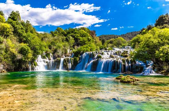 Der 111 km2 große Nationalpark Krka ist ein beliebtes Ausflugsziel für Reisende in Dalmatien. Die wasserreiche Krka ist ein typischer Karstfluss. Von ihrer Quelle bei Knin bis zur Mündung in die Adria bildet sie zahlreiche Stromschnellen und Wasserfälle sowie mehrere aufgestaute, von Binsen und Schilf gesäumte Seen.
