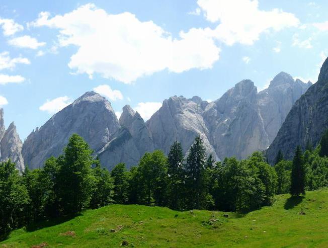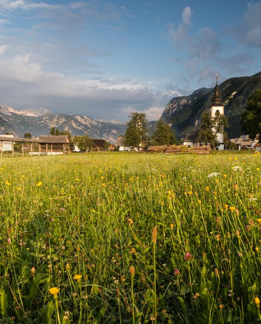 Die Insel: mitten im eisblauen Bleder See, mit Kirche und Alpenpanorama. Der Nationalpark: nach dem höchsten Berg des Landes, dem dreizackigen Triglav (2864 m), benannt, mit drei Felsköpfen, mitten in den Julischen Alpen. Der Nationalpark, nur fast halb so groß wie Berlin, lässt dich staunen: Du kommst durch Gletschertäler, triffst Kühe auf Hochalmen und schnupperst an Blumen, die nur hier vorkommen, zum Beispiel am Julischen Mohn. Dort ein Steinbock, ein Schneehase, hier ein paar Gämsen. Vorbei an schäumenden Wasserfällen, durch das Tal der smaragdgrünen Soča – alles wirkt wie aus der Werbebroschüre. Fast, denn in der Region entlang der Soča wurde im Ersten Weltkrieg erbittert gekämpft: Wo früher die Front verlief, wanderst du heute in sattgrüner Natur zum Glück in friedlicher Mission.