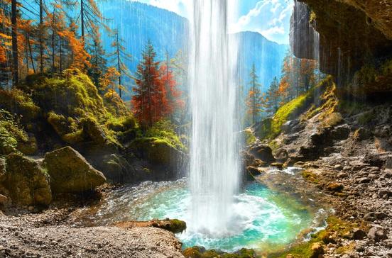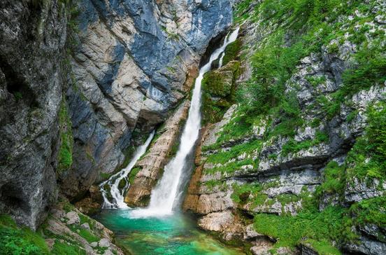 Der Top-Tip für ein Selfie, das Ihre Facebook- Freunde beeindrucken wird: vor dem spektakulären Wasserfall, der insgesamt über 80 m – 51 davon im senkrechten Fall – herabstürzt. Ab der Hütte Koča pri Savici, 8 km westlich, führt ein knapp halbstündiger Fußmarsch durch den Wald und die Savica-Schlucht hinauf.