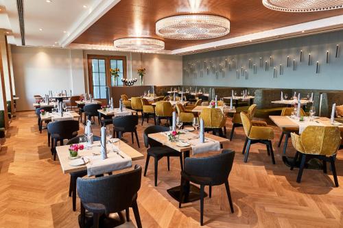 Jeden Morgen wird ein Frühstücksbuffet angeboten. Das elegante Restaurant Riva bietet Seeblick, einen offenen Kamin und eine Sommerterrasse. Das Restaurant Ophelia ist mit 2 Michelin-Sternen ausgezeichnet und serviert Gourmetküche. An der stilvollen Bar und im Loungebereich erhalten Sie Getränke.