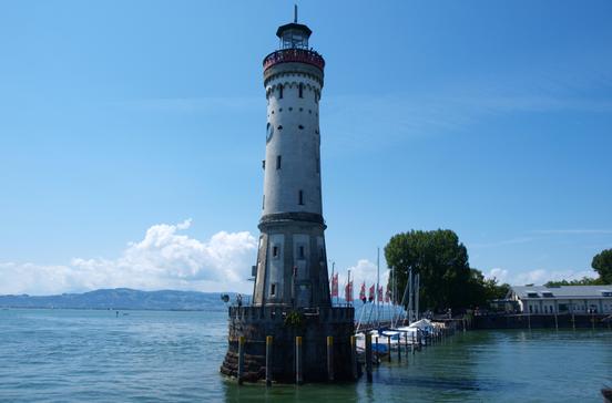 An der Einfahrt Lindauer Hafens steht seit 1856 der Neue Leuchtturm (33 m). Von ihm aus man einen herrlichen Blick auf See und Alpen.