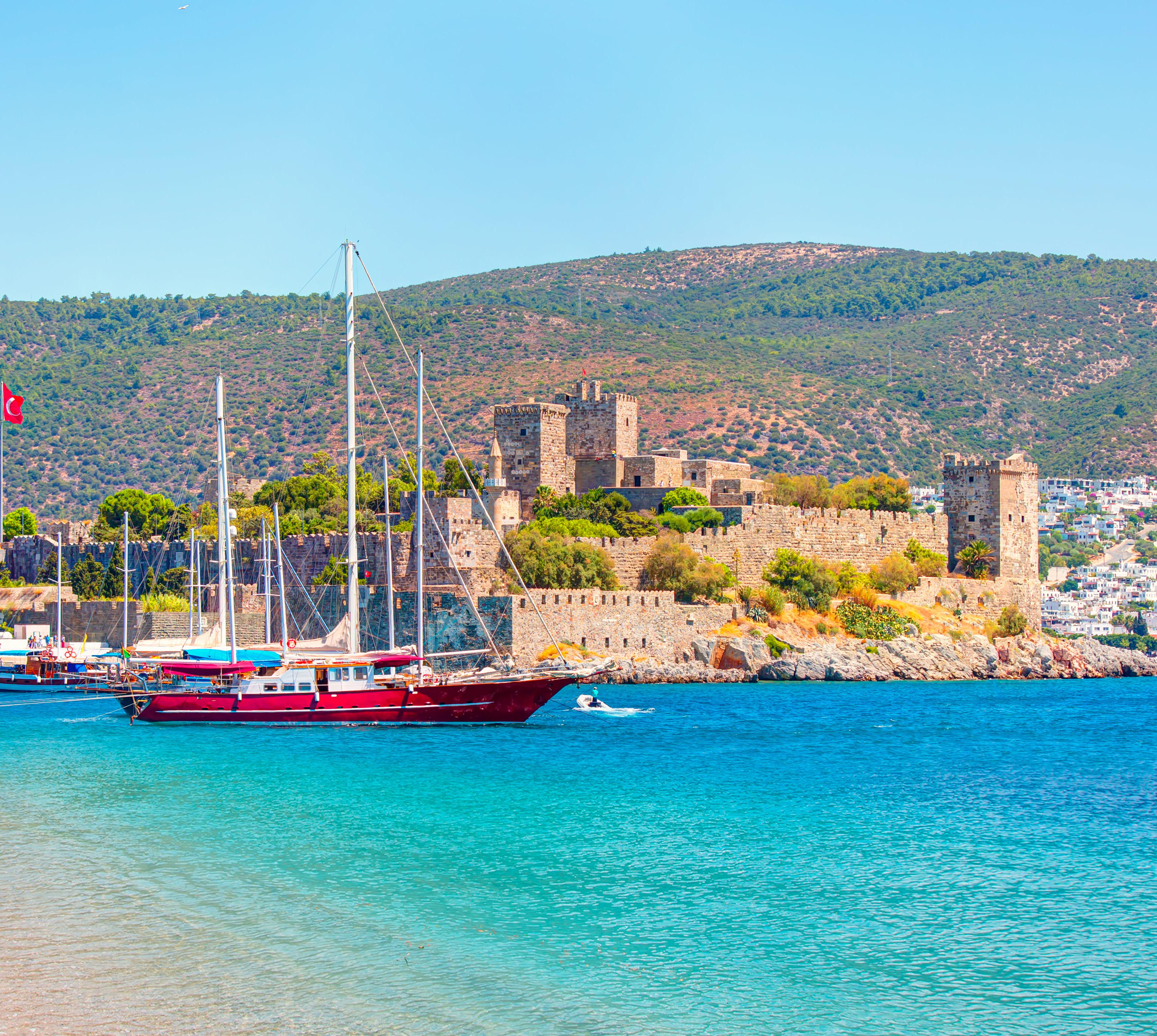 Von den St.-Jean-Rittern Anfang des 15.Jh. erbaut, ist die große, restaurierte Burg von Bodrum beispielhaft für die Architektur aus der Periode der Kreuzzüge. Hier kann man auf die vielen Türme klettern und die Wappen der Kreuzritter bewundern. Das Glaswrack, die Amphorenkollektion, die Folterkammer, das Zimmer der Prinzessin Ada samt ihrem Skelett und nicht zuletzt die vielen Wrackfunde der Unterseearchäologie in der Ägäis machen die Burg zu einem echten Erlebnis.