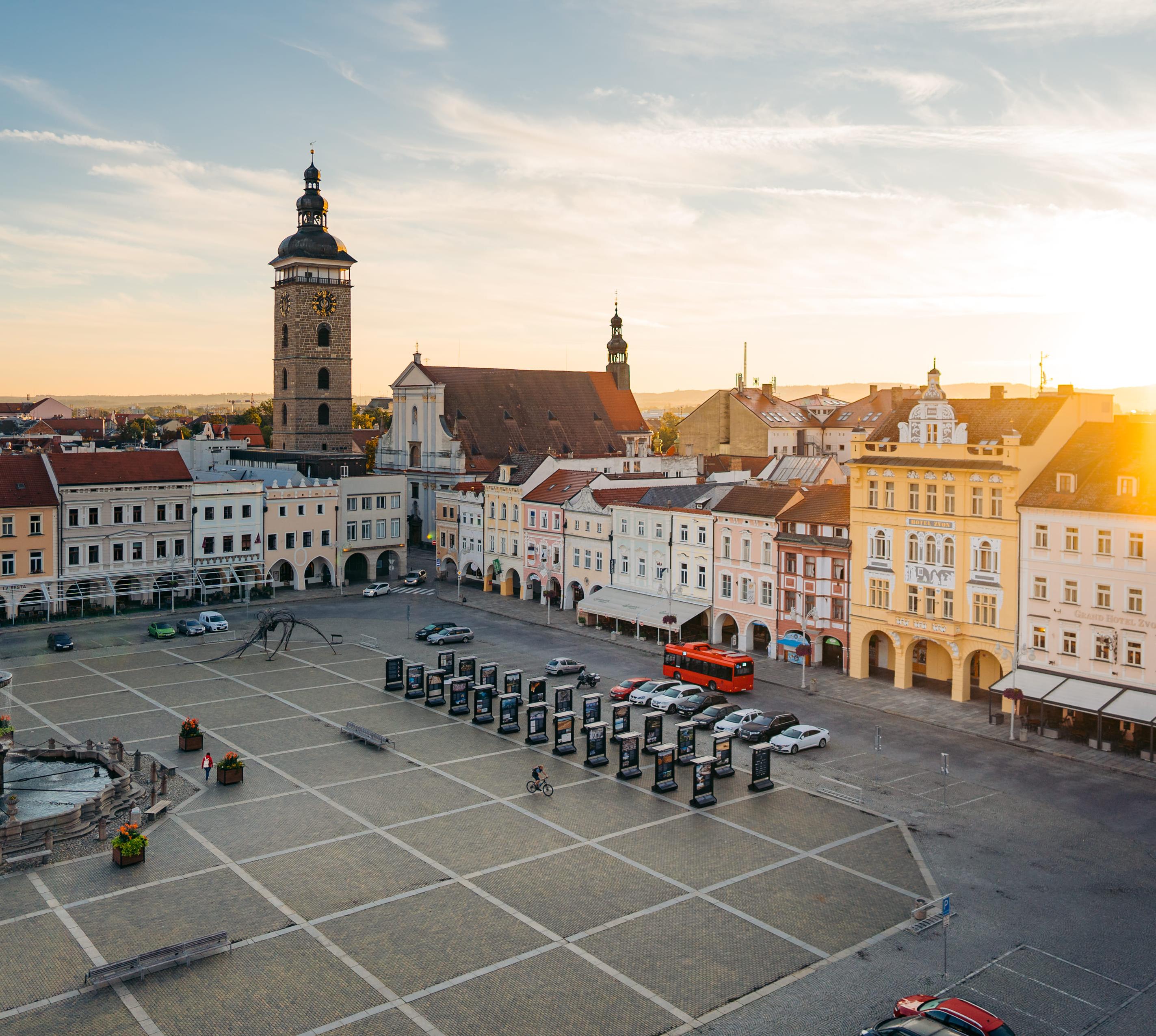 Bei einer Kahnfahrt, die regelmäßig an der Sokol-Insel startet, hast du fast die ganze Stadt im Blick. Starte zu Fuß, solltest du zuerst zum Premysl-Ottokar-II.-Platz, einem der größten Marktplätze in Böhmen. Die Fassaden der Häuser mit den markanten Arkadengängen stammen aus Barock und Klassizismus, die Dominante ist das Rathaus mit seinen drei Türmen. Eine Straße weiter steht der barocke St.-Nikolaus-Dom (Chrám sv. Mikulásě), vom Schwarzen Turm (Černá věž) (16.Jh.) hast du die beste Übersicht. Die Klosterkirche Mariä Opferung (Kostel Obětování Panny Marie) am Piaristické náměstí wurde im 13.Jh. errichtet.