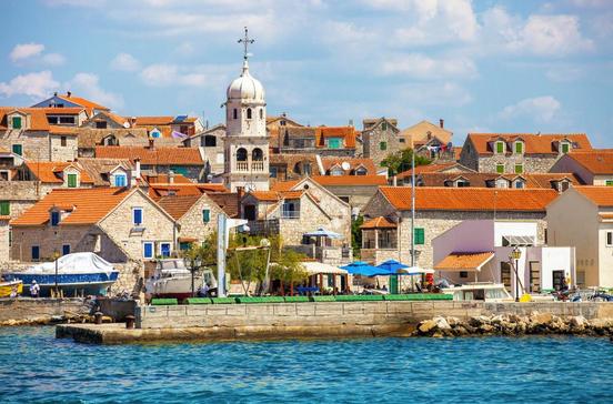 Hinter der eher tristen Peripherie der drittgrößten Hafenstadt Dalmatiens verbirgt sich eine verwinkelte, von Renaissancepalästen geprägte Altstadt rund um die Kathedrale Sv. Jakov. Auf einer Terrasse oberhalb der Uferpromenade errichtet, beherrscht das zum Unesco-Welterbe zählende Gotteshaus mit seiner marmorweißen Kuppel das Stadtbild. Im Gewirr der Gassen um das sakrale Zentrum bis hinauf zur Ruine der Festung Sv. Mihovil (13.-18.Jh.), erinnern prunkvolle Palazzi an die lange Geschichte Šibeniks, das im 11.Jh. von kroatischen Königen an der Mündung der Krka ins Meer gegründet wurde und 1412 unter venezianische Herrschaft geriet. Šibenik ist ein idealer Ausgangspunkt für Touren durch das vorgelagerte Šibenik-Archipel mit den Hauptinseln Krapanj und Prvić sowie in die Inselwelt des Kornati-Archipels. Im Hinterland verbinden Wander- und Wasserwege die Kaskaden des Flüsschens Krka im gleichnamigen Nationalpark.