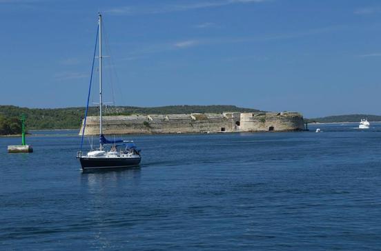 Die eindrucksvolle Bastion scheint im Meer zu schwimmen, wie sie da am Eingang des Kanals Sv. Ante liegt. Kroatiensjüngste Unesco-Welterbestätte (2017) wurde im 16.Jh. erbaut, um Šibenik von der Meerseite her zu schützen. Über eine kleine Insel führt ein schmaler Landweg durch den Kanal zur Festung hinüber.