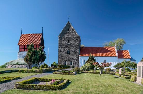 Architektonische HighlightsDie kleinste Kirche der Insel, End e des 12.Jhs. im romanischen Stil erbaut, ist viel zu schön, um übersehen zu werden. Sie steht 4 km von Rønne entfernt in der nach ihr benannten Siedlung Knudsker. Das Mobiliar ist eine Mischung aus an mutiger Schlichtheit und traumhafter Malerei.