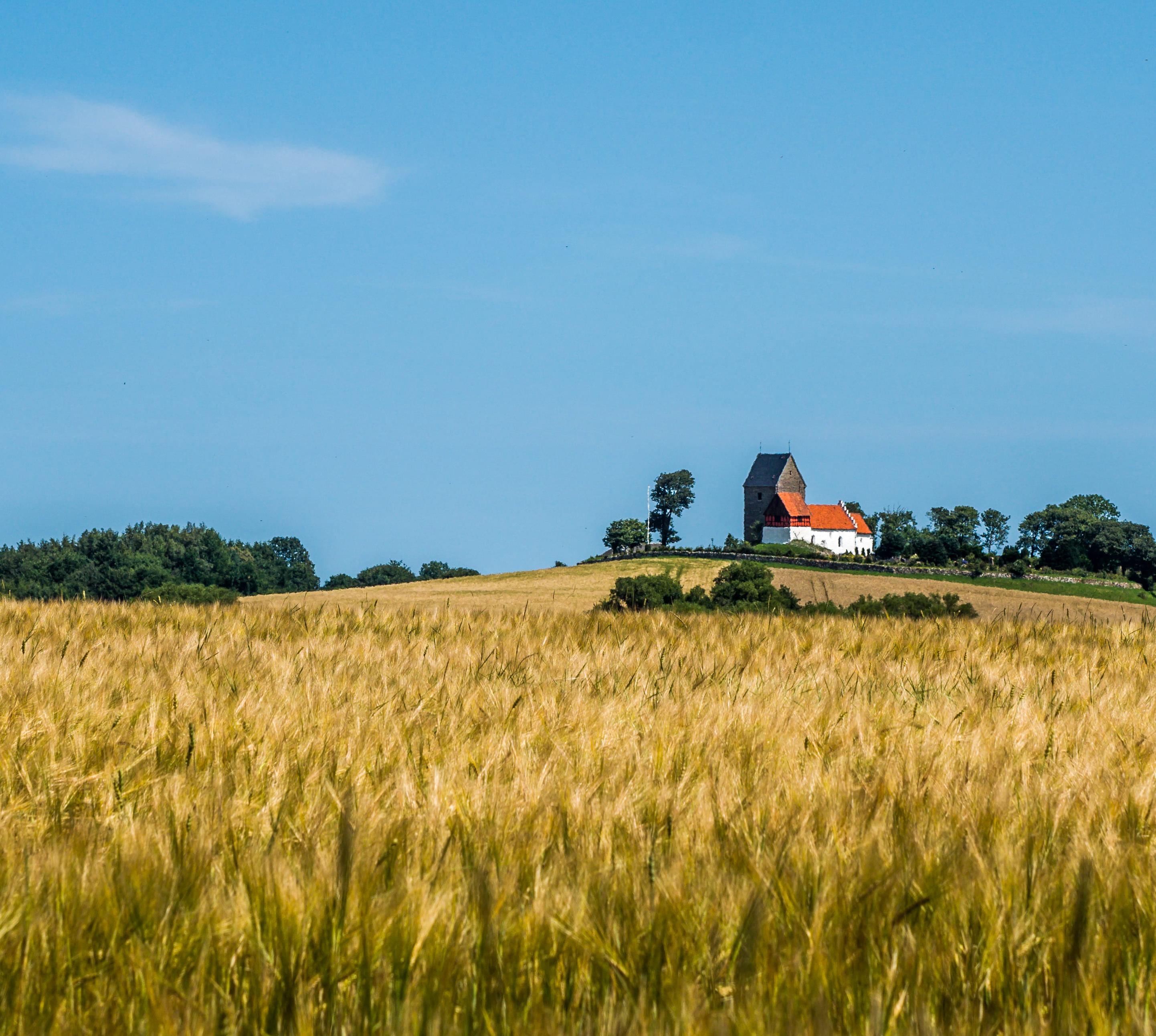 Diese neuromanische Landkirche 7 km nordwestlich in Vestermarie wurde erst um 1884 auf den Fundamenten eines mittelalterlichen Gotteshauses gebaut. Dabei wurde, selten für Bornholmer Bauwerke, rötlicher Granit verwendet. Eine liebevoll ausgemalte Kassettendecke im Innern und sechs Runensteine auf dem Friedhof sind die wesentlichen Sehenswürdigkeiten der Kirche.