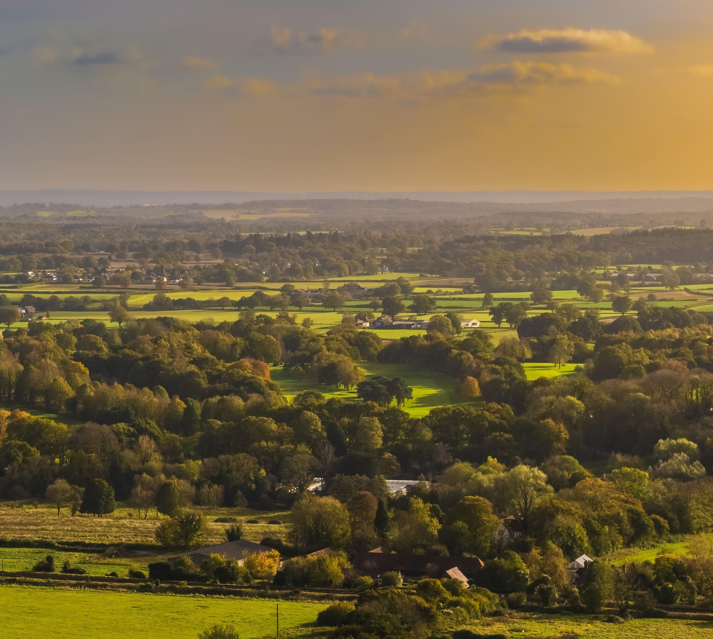 Genießen Sie das Panorama von einem der schönsten Aussichtspunkte in Surrey. Die waldreiche Gegend ist ein beliebtes Ausflugsziel der Londoner, die auf den Naturwegen die Landschaft und die Aussicht genießen. Im Juni und Juli blühen hier wilde Orchideen.