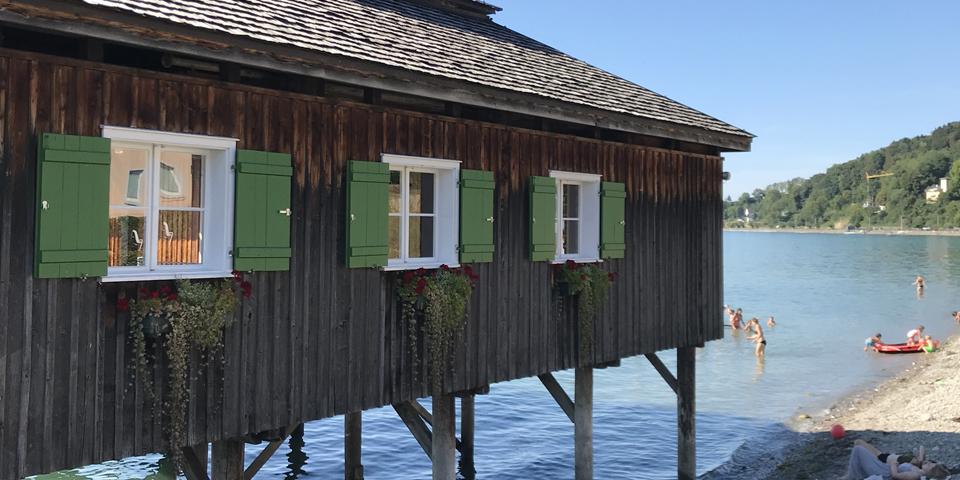 Einheimische gehen gern in die Mili, ein ehemaliges Militärbad (1825) mit nostalgischem Holzbadehaus auf Pfählen mitten im See. Hier ist es der Badekultur doch tatsächlich gelungen, die Zeit anzuhalten – man rechnet jeden Augenblick damit, dass ein Mann mit Mittelscheitel, gezwirbeltem Schnurrbart und geringeltem Badeanzug aus dem Wasser auftaucht. Auch SUP-Verleih.