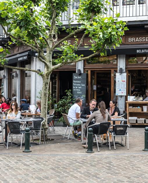 Brassage heißt diese Mischung der Gegensätze in Brüssel – passenderweise ein Begriff aus dem Brauereiwesen. Denn beim Trinken erkennt man die echten Brüsseler. Bloß kein Pils! Brüsseler schätzen neben der einheimischen gueuze die starken Abteibiere – für Besucher ist allerdings beides mit Vorsicht zu genießen. Gueuze ist ein Gemisch aus jungem und älterem lambic, also saurem, obergärigem Bier – und nicht jedermanns Geschmack: Die einen finden, es würde wie Champagner schmecken, die anderen erklären, es sei schlichtweg ein saures Bier. Abteibiere hingegen schmecken süßer und sind deswegen massentauglicher – aber sei gewarnt: Wegen der Süße schmeckt man den enormen Alkoholanteil von bis zu 13 Prozent nicht heraus. Wer um Bier einen Bogen macht, dem sei der beliebte Aperitif half-en-half empfohlen, eine Mischung aus Sekt und Weißwein. Auch Champagner sowie Burgunder wird viel getrunken, und in den Hipsterbars der Brussels Bubble fällst du mit Aperol Spritz oder Gin Tonic am wenigsten auf.