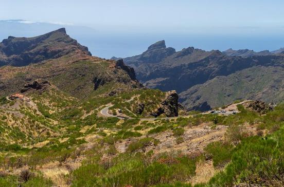 TouristenattraktionenBeim Mirador de Hilda mit Aussichtsterrasse und Café blickt man zurück aufs Masca-Tal.