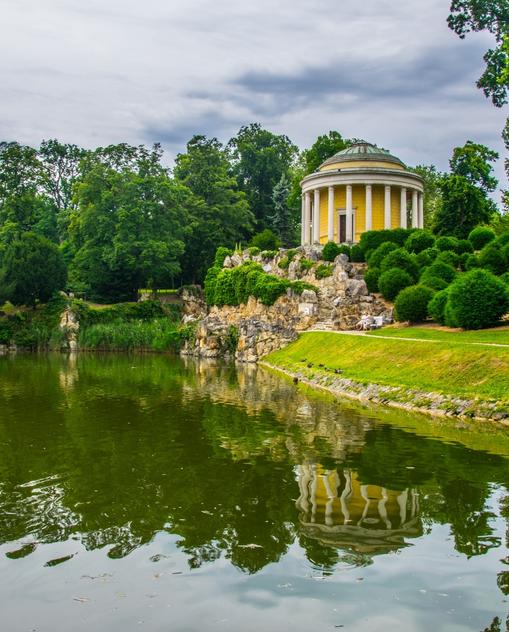 Die am Fuße des Leithagebirges gelegene Landeshauptstadt (14 300 Ew.) ist untrennbar mit den Namen Esterházy und Haydn verbunden. Das Eisenstädter Schloss ist der Stammsitz der ungarischen Fürstendynastie Esterházy, der Kaiser Ferdinand II. 1622 die gesamte Stadt zum Geschenk machte. Das Schloss ist von einem schönen Park umgeben, die Innenausstattung prachtvoll. Besonders sehenswert ist der nach dem österreichischen Komponisten Joseph Haydn (1732–1809) benannte Saal, wo er seiner Arbeit als Haus- und Hofmusiker des Fürstenhauses über lange Jahrzehnte nachkam. Das Wahrzeichen der schmucken Stadt ist indes die Bergkirche mit dem Kalvarienberg und dem Haydnmausoleum.