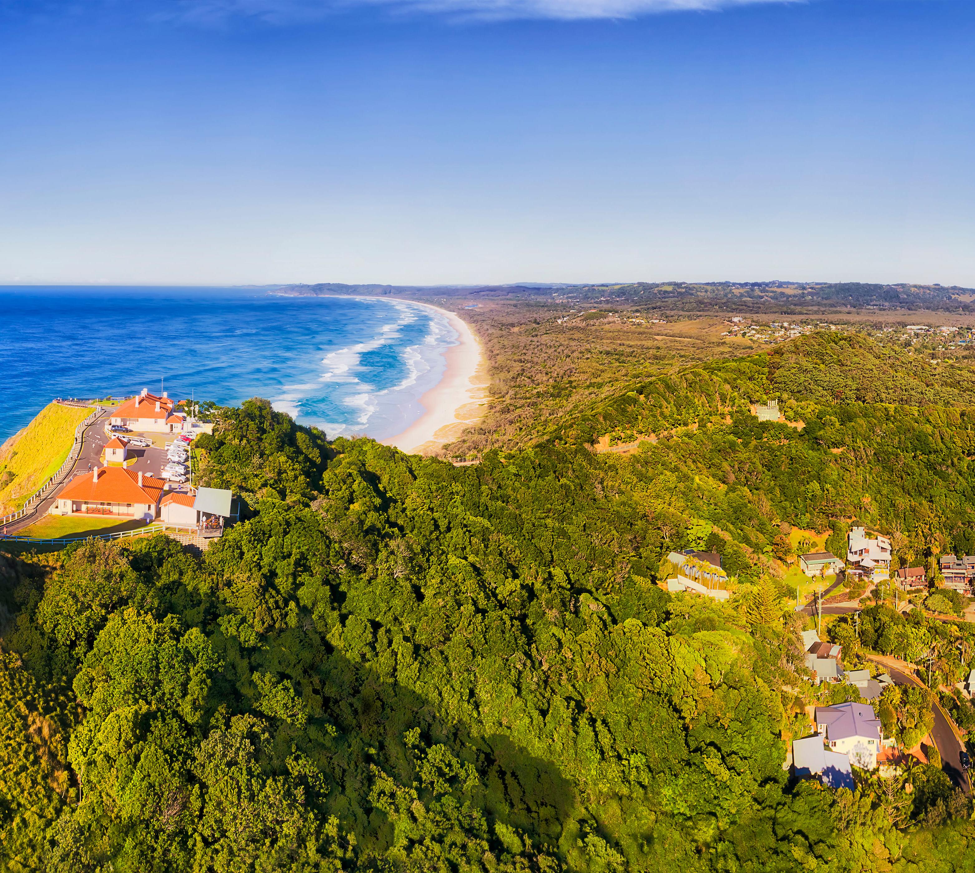 Einst tummelten sich hier Rucksackreisende und Aussteiger – doch die haben sich längst nach Nimbin ins Hinterland verzogen. Abends sorgen vor allem jüngere, gut situierte Reisende in der Bay Street so richtig für Stimmung, während tagsüber die autobahnbreiten Traumstrände von Surfern bevölkert werden. Der Badestrand Main Beach zieht sich 50 km bis fast an die Gold Coast von Queensland, während Watego‘s Beach ein absoluter Höhepunkt für Surfer ist. Hier reiten die Brettakrobaten die hohen, lang auslaufenden Wellen mit Delphinen um die Wette ab.