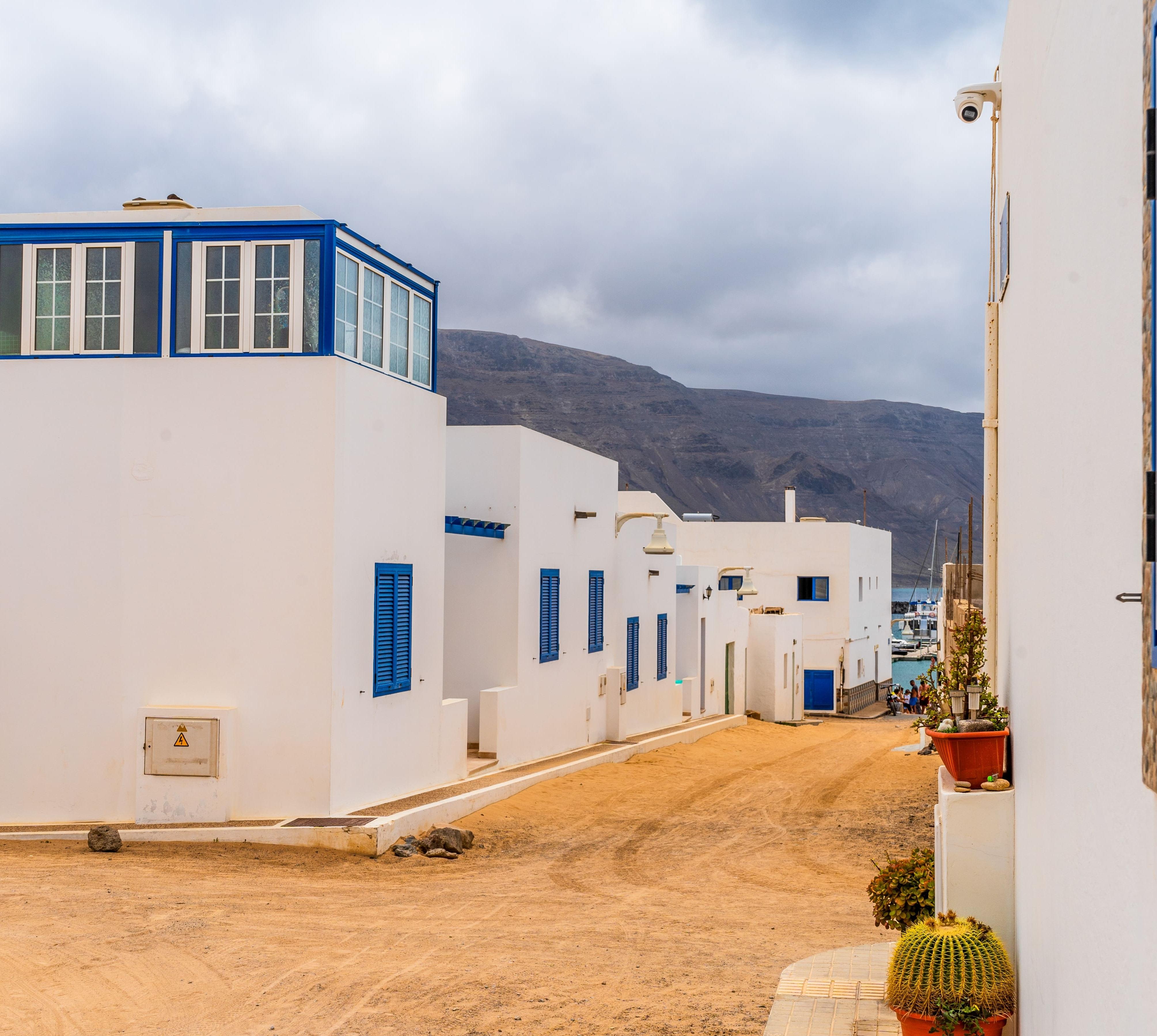 Der Ort Caleta del Sebo besteht aus einigen schmucklosen Häusern und wenigen, rechtwinklig angelegten Straßen, die alle ungeteert sind.