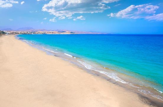1,8 km hellgelber Sand: Der Strand von Costa Calma gliedert sich in zwei Abschnitte: Da bleibt reichlich Platz zum Ballspielen oder Toben.