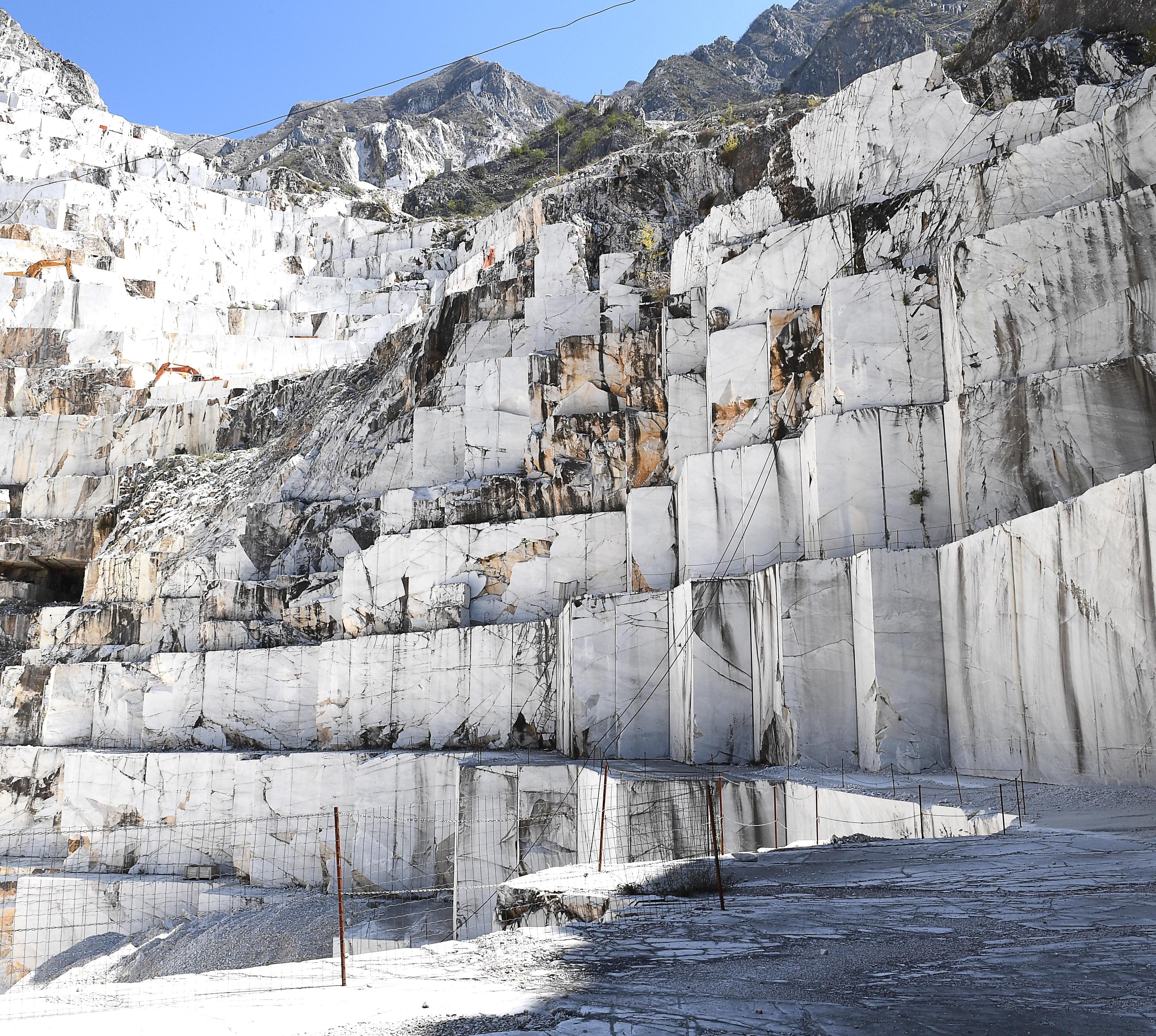 Seit Jahrtausenden bricht der Mensch oberhalb von Carrara den weißen "Stein des Lichts" aus den Bergen. Umweltpolitisch ein Desaster, und doch kann man sich der Faszination der Steinbrüche ("cave") die mancherorts Felsburgen gleichen nicht entziehen. Es werden auch Führungen in die imposante Unterwelt angeboten. Hier sollte man seine Jacke nicht vergessen.