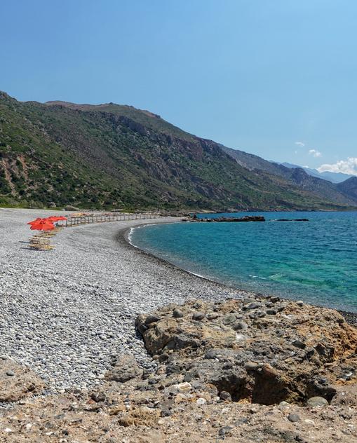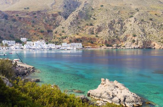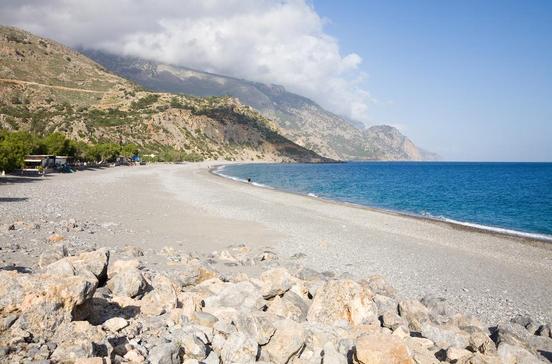 Der Weiler an der Südküste der Insel ist nur per Schiff von Paleochóra oder Chóra Sfakíon aus zu erreichen. Man badet von Felsen aus und in kleinen Buchten.