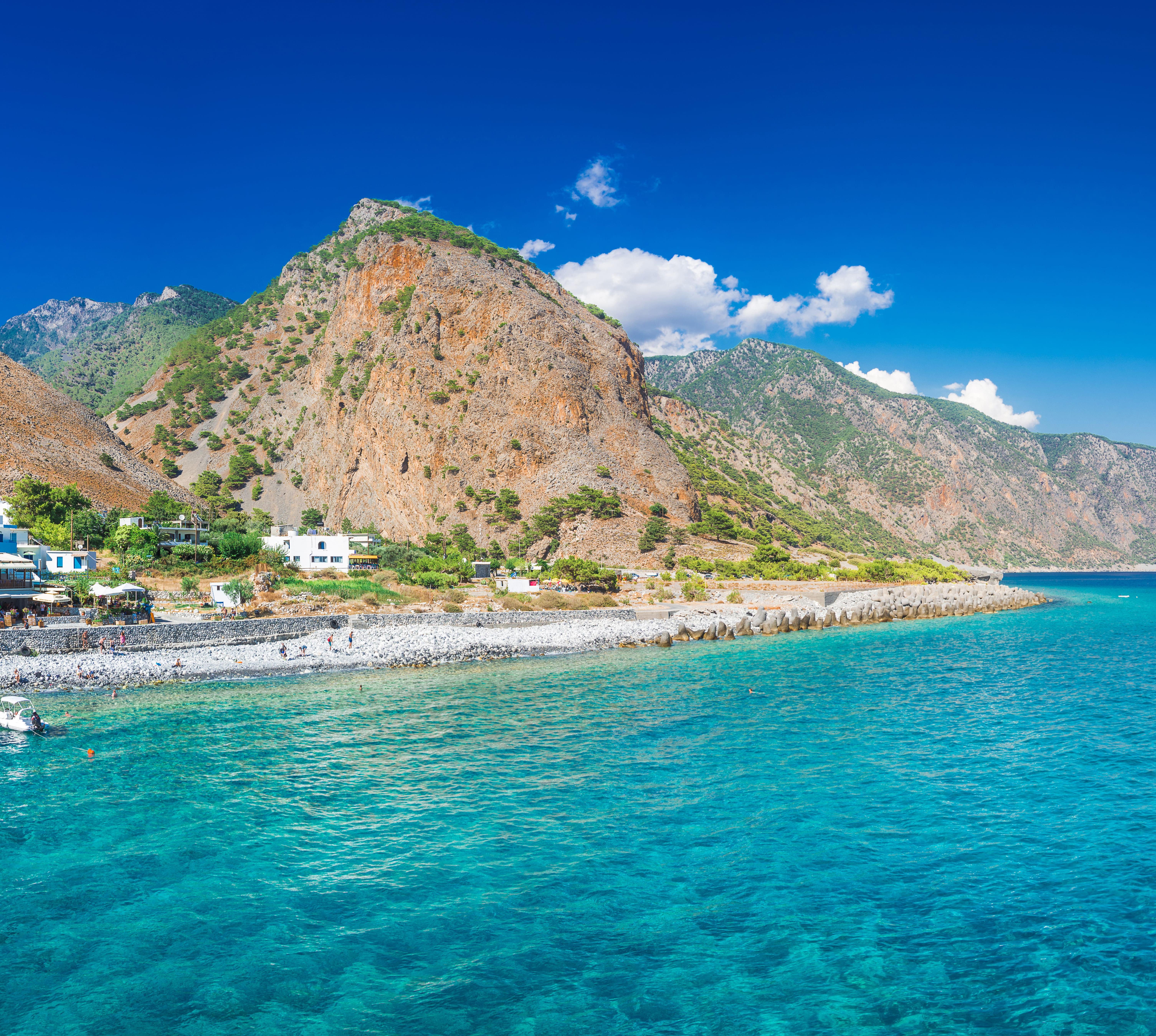 Das Südküstendorf am Ausgang der Samariá-Schlucht wird von einer türkischen Burgruine überragt. Im Ort selbst gibt es einige Tavernen und Pensionen. Ein erfrischendes Bad vom Kiesstrand aus ist nach der Wanderung durch die Schlucht eine große Wohltat. Während der Saison ist Agía Rouméli täglich per Boot mit Chóra Sfakíon und Paleochóra verbunden.