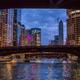 Der perfekte Standort für ein Nachtfoto der beleuchteten Skyline. Der Tribune Tower mit seiner reich verzierten Fassade und das Wrigley Building mit seinen beiden Türmen erstrahlen in gleißendem Scheinwerferlicht. Der französische Trapper Louis Jolliet, nach dem eine kleine Stadt benannt wurde, und der Jesuitenpater Jacques Marquette waren die ersten Weißen, die im September 1673 an dieser Stelle den Fluss überquerten, acht Jahre später folgte ihnen der Entdecker La Salle auf dem Weg zum Mississippi.