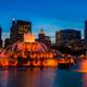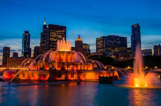 Die Buckingham Fountain, offiziell bekannt als "Clarence Buckingham Memorial Fountain", ist eine der beliebtesten Sehenswürdigkeiten Chicagos. Der Brunnen befindet sich im Zentrum des Grant Parks und ist mit über 7 m Höhe kaum zu übersehen. Die dynamischen Licht- und Wasserspiele machen den Brunnen zu einem einzigartigen Anblick.